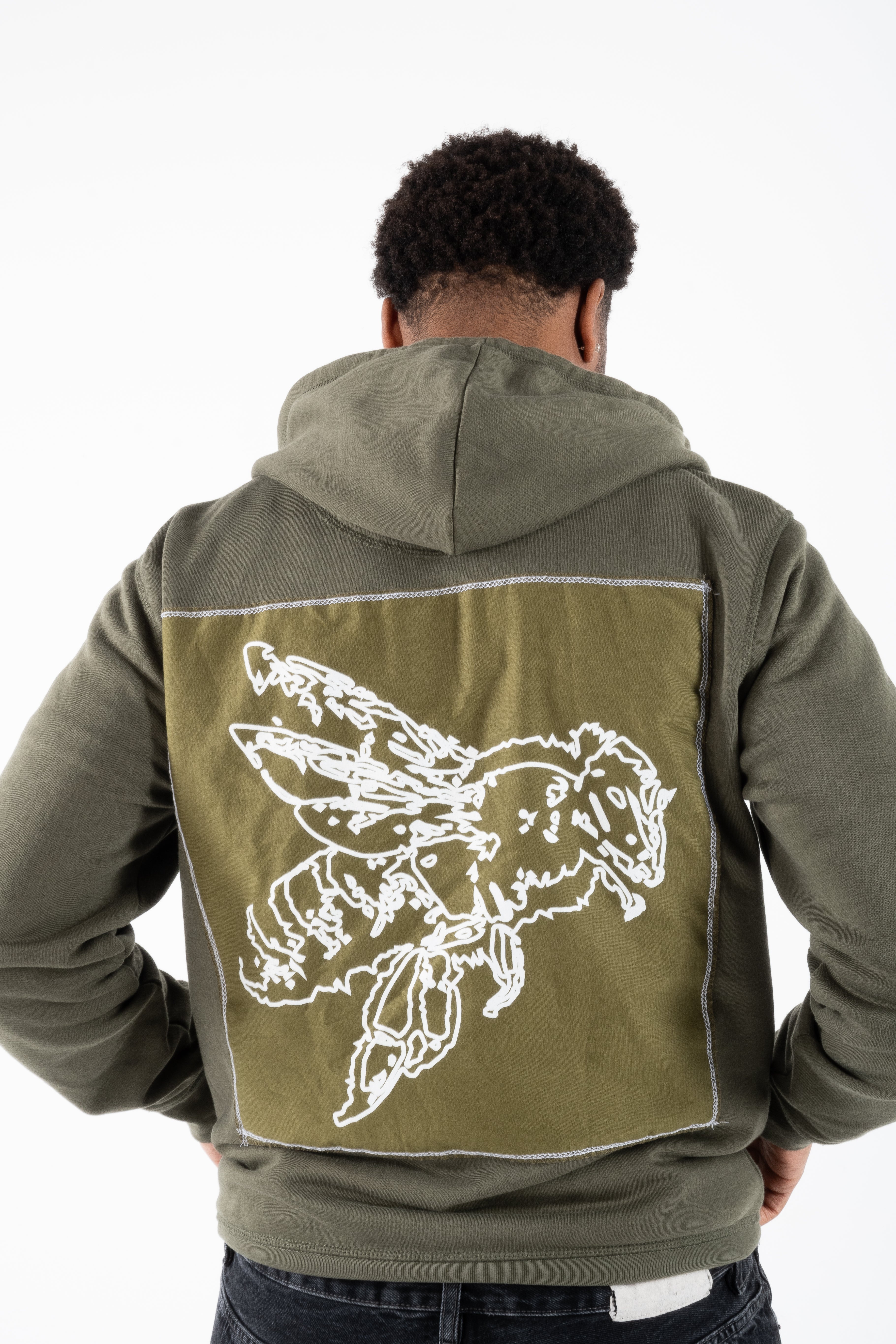 including Screen printed onto Patchwork on front right breast pocket & back all over hoodie for that unique look.